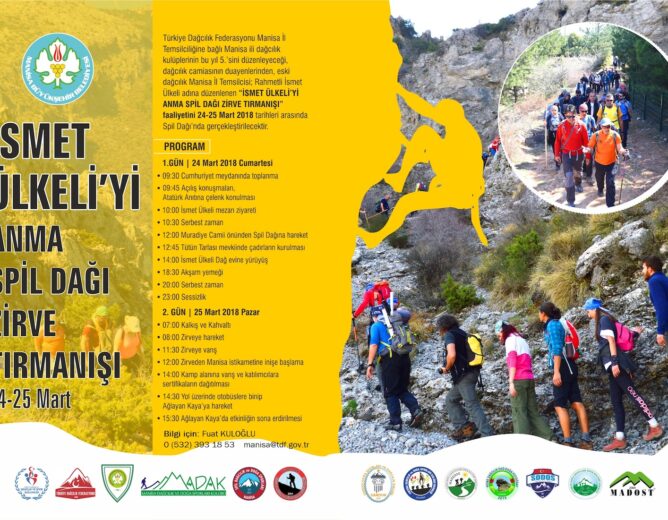 Türkiye Dağcılık Federasyonu Manisa İl Temsilciliği 2018 yılı faaliyet programında yer alan, Manisa ili genelindeki dağcılık...
