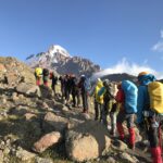 16 Ağustos 2017 tarininde başlayan uygulamalı eğitimler ise zaman zaman yağmur, rüzgar ve yoğun sisi altında 19 Ağustos 2017 tarihinde son bulmuştur. 20 Ağustos 2017 tarihinde ise 3653 m’de bulunan meteoroloji istasyonu kamp alanında sporcularımızın teorik sınavları yapılmıştır. Eğitim faaliyetinin ardından 14 kişiden oluşan ekibimiz Kazbek Dağı’na (5047 m) başarılı bir şekilde zirve tırmanışı gerçekleştirmişlerdir.